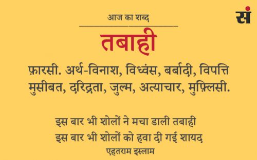 फ़ारसी ज़बान से आया है मगर इसके मायने किसी भी ज़बान में ख़ूब समझे जाते हैं. यह लफ़्ज़ तबाह की क्रिया है. तबाहहाल यानी की मुसीबत का मारा, दरिद्र इंसान और तबाहकार माने बरबादी फैलाने वाला, ज़ालिम. तबाहे रोज़गार का मतलब ज़माने की गर्दिश का शिकार इंसान.