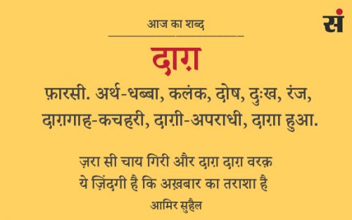कचहरी को दाग़गाह इसलिए कहा गया क्योंकि वहाँ काग़ज़ात पर मुहर लगाई जाती है, और ऐब वालों को, अपराध में शामिल शख़्स या धब्बों वाले फल इसलिए दाग़दार कहे जाते हैं. न मिटने वाली छाप – किरदार पर, बदन के किसी हिस्से पर, दिल पर, काग़ज़ पर, दीवार पर…ग़र्ज ये कि दिखने वाली शै से लेकर न दिखाई देने वाली सोच तक यह अपना असर रख सकता है.