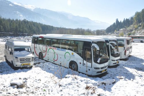 - मनाली में वॉल्वो का बस अड्डा. लॉकडाउन के दिनों से ही पूरे हिमाचल प्रदेश में वॉल्वो बसों का संचालन रोक दिया गया है.