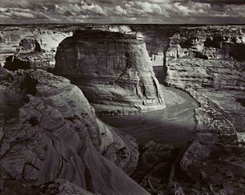 ‘ग्रांड टिटन्स एण्ड स्नेक रिवर’ एडम्स की मशहूर तस्वीरों में से एक है. ऊंचाई से बनाई हुई इस तस्वीर में पहाड़ी और घाटी के बीच बहती नदी दिखाई देती है, दाईं ओर नीचे से शुरू होकर हदे निगाह तक. फ़्रेम के ऊपरी हिस्से में बर्फ़ से ढंकी लंबी पर्वत श्रृंखला है, आकाश का कुछ हिस्सा बादलों से ढंका है, और सूर्यरश्मियाँ इस दृश्य को रोशन करतीं नदी के पानी को चमकाती हैं. थोड़ा स्वनिल-सा, थोड़ा नाटकीय नाटकीय मंज़र है.
