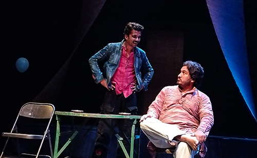 बरेली | विंडरमेयर थिएटर में सोमवार की शाम को बंगलूरु की नाट्य संस्था ‘कहे विदूषक’ के कलाकारों ने ‘वेटिंग फ़ॉर नसीर’ का मंचन किया. नसीरुद्दीन शाह के दीवाने दो कलाकारों की बातचीत के हवाले से यह रंगमंच की दुनिया से संघर्षों, उसकी अंदरूनी सच्चाइयों, नायक पूजा और इसी के समानांतर ज़िंदगी का फ़लसफ़ा असरदार ढंग से बयान करता है.