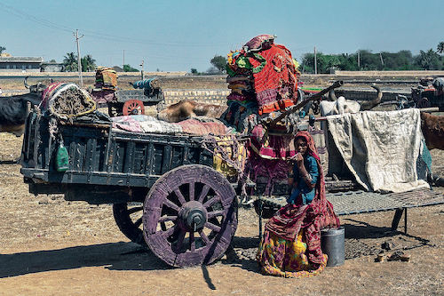 उनकी गाड़ियां छोटी-छोटी चीज़ों से सजी होतीं जैसे घुंघरू, घंटियाँ, शीशे की गोल बिंदियाँ, सजावटी धातु की प्लेटें और कपड़े की रंगीन झंडियाँ. इन गाड़ियों को चलाने वाले बैल मुझे कभी दिखाई नहीं दिए. ये गाड़ियाँ बांस की सिरकी से ढकी होती जो शायद उन्हें धूप और बारिश से बचाती थी. याद नहीं उन दिनों मच्छर होते थे कि नहीं. साल के बाक़ी महीनों में जब तेज़ गर्मी या हाड़ जमा देने वाली ठंड पड़ती होगी, तब जाने ये लोग कैसे रहते होंगे.