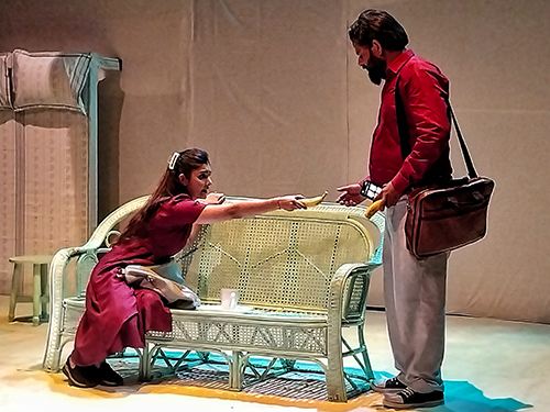 यहां घरेलू यथार्थ नहीं बल्कि आधुनिक जीवन की त्रासदी है, जहाँ समय का अभाव हमें सबसे साधारण कामों से भी वंचित कर देता है. हर अधूरा काम, हर टला हुआ निर्णय, हर दबा हुआ निशान, असल में उस समाज का आईना है जो हमें प्रोडक्टिविटी की दौड़ में तो झोंकता है लेकिन बुनियादी सुकून और देखभाल की ज़मीन छीन लेता है. यह दृश्य हमें बताता है कि धूल और टपकता पानी सिर्फ़ घर की समस्या नहीं हैं, ये हमारे अस्तित्व की धूल और रिसाव हैं, समाज और संस्कृति की वह दरार जो रोज़मर्रा में छिपकर हमें खोखला करती रहती है. राजनीतिक अर्थ में यह नागरिक के उस जीवन को दर्शाता है जो व्यवस्था की सफ़ाई के इंतज़ार में बार-बार टलता रहता है. अनंत सफ़ाई और अधूरेपन का चक्र आधुनिक मनुष्य की नियति बन गया है, और मंच यह अनुभव कराता है कि हमारी असली थकान धूल से नहीं, बल्कि उसे मिटाने के लिए कभी टाइम न होने से पैदा होती है.